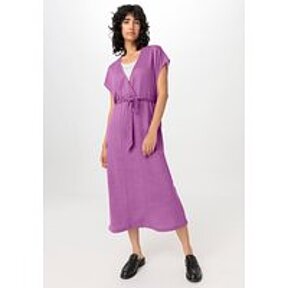 hessnatur Damen Jersey Kleid Midi Relaxed aus Leinen - lila - Größe S