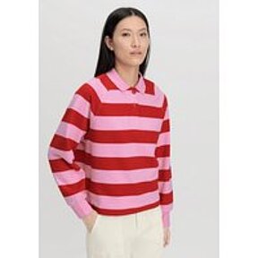 hessnatur Damen Sweatpolo Streifen Relaxed aus Bio-Baumwolle - rosa - Größe XS
