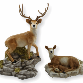 Dekofigur Hirsch stehend u. Reh mit Bambi liegend als Satz Kollektion Castagna aus Resin H 15-37 cm