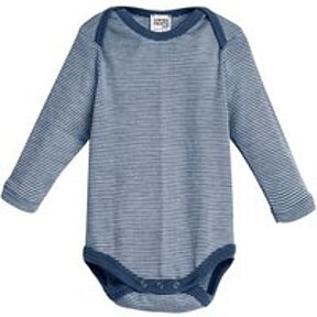 Living Crafts Baby Body Langarm Wolle Seide blau-geringelt Gr. 74/80