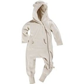 Baby Overall mit Kapuze Strick-Qualität Bio-Baumwolle hellgrau melange Gr.62/68