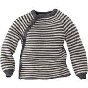 Baby Jacke Schlüttli Bio-Merinowolle helblau-geringelt Gr.74-80