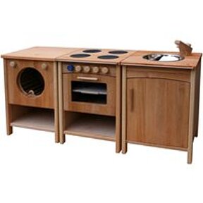 Kinderküche Set, Spüle, Herd, Waschmaschine, Erlenholz, geölt Maße je 50 x 35 x 35 cm