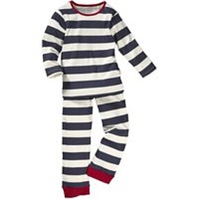 Kinder Schlafanzug 2-teilig Bio-Baumwolle Blockstreifen Blau Gr. 110/116