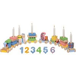 goki Geburtstagszug Eisenbahn aus Holz mit austauschbaren Zahlen 1-6 Länge 52 cm