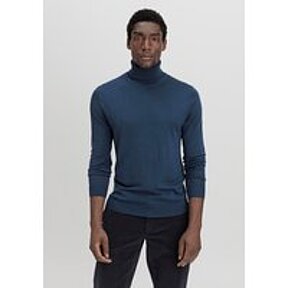 hessnatur Herren Rollkragen Pullover Regular aus Bio-Merinowolle - blau - Größe 46