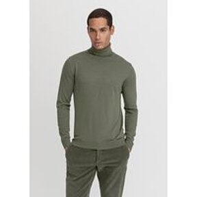 hessnatur Herren Rollkragen Pullover Regular aus Bio-Merinowolle - grün - Größe 46