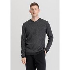 hessnatur Herren V-Pullover Regular aus Bio-Baumwolle mit Bio-Merinowolle - grau - Größe 46