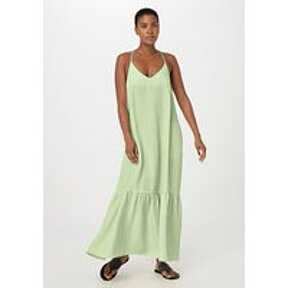 hessnatur Damen Trägerkleid Maxi Relaxed aus TENCEL™ Lyocell mit Leinen - grün - Größe 36