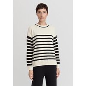 hessnatur Damen Strickpullover Streifen Relaxed aus Bio-Merinowolle und Bio-Baumwolle - schwarz - Größe S