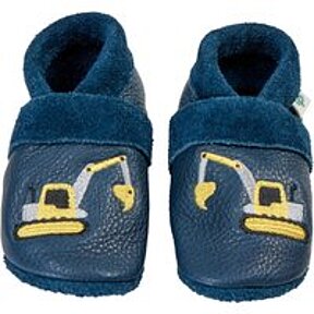 Baby und Kinder Hausschuhe Krabbelschuhe Ecopell Leder Bagger blau Gr. 21/22