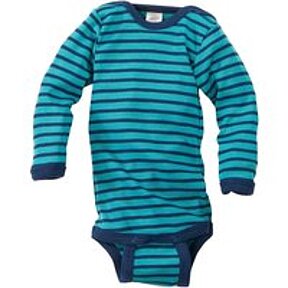 Engel Natur Baby Body Langarm Wolle Seide eisvogel-geringelt Gr.74/80