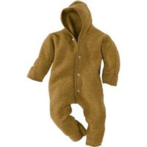 Engel Natur Baby Kapuzenoverall Bio-Merinowolle Fleece melange-safran Gr. 74/80