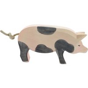 Ostheimer Schwein (hoch, gefleckt) 7 cm Laubholz, handgeschnitzt und lasiert