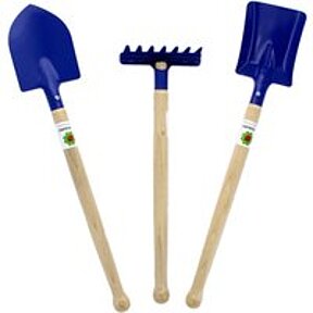 Sandspielzeug Metall und Holz, Harke, Schaufel, Spaten 3-teilig blau Länge 30-39 cm