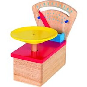 goki Waage für Kaufladen und Kinderküche, Gummibaumholz 12,6 x 15,2 x 17,2 cm
