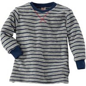Engel Natur Kinder Schlafanzug Oberteil Bio-Merinowolle grau-marine Gr.92