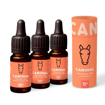Drei Stück zum Vorteilspreis! CBD Breitspektrumöl speziell für Pferde entwickelt. CBD-Gehalt: 12%. Basis: BIO Leindotteröl. Inhalt: 3x 10ml