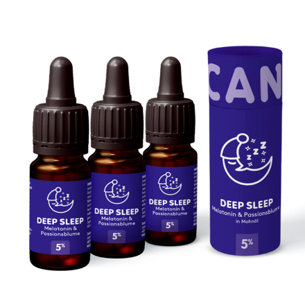 Drei Stück zum Vorteilspreis! Nahrungsergänzungsmittel für Menschen mit Schlafproblemen. Mit Melatonin, Passionsblume und natürlichem CBD für einen erholsamen Schlaf. CBD-Gehalt: 5%. Basis: BIO Mohnöl. Inhalt: 3x 10ml