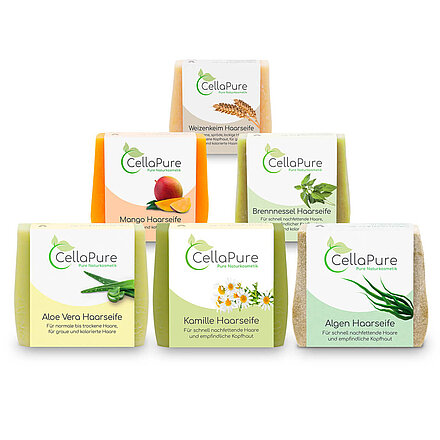 Das CellaPure Haarseifen Vorteilspaket Zum Kennenlernen bieten wir Ihnen ein Vorteilspaket mit allen?6 CellaPure Haarseifen an. Schnuppern Sie sich durch die unterschiedlichen Duftrichtungen und finden Sie so Ihren pers?nlichen Lieblingsduft. F?r den Vorratskauf, zum Verschenken oder einfach...
