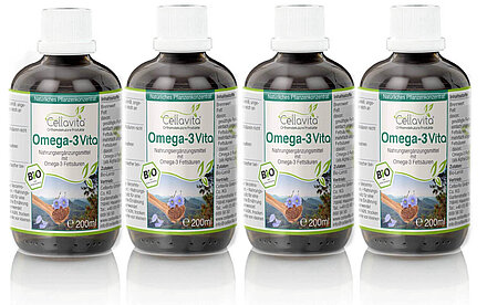 Was ist Bio-Omega-3 Vita? Bio Omega-3 Vita, hier setzt Cellavita? wieder Ma?st?be. Mindestens 50 % Omega-3 Gehalt, d.h. ?ber 900mg reines Bio Omega-3 pro Tagesdosis, alles auf pflanzlicher Basis, kein Fisch- oder Krill?l aus zweifelhafter Herkunft. Cellavita? setzt auch hier auf die Urkraft der P...