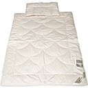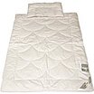 Preisgünstiges Schlafset für Babys und Kleinkinder aus Bio-Baumwolle (kbA) Wunderbares Schlafset aus reiner Bio-Baumwolle (kbA) für Ihre Kleinsten. Das Schlafset besteht aus einer Baby- bzw. Kinderbettdecke und einem passenden Flachkissen. Sowohl die Füllungen als auch die Inletts bestehen aus Baumwolle aus kontrolliert biologischem Anbau. Der atmungsaktive Stoff ist besonders feuchtigkeitsausgleichend und besonders hautsympathisch. Optimal geeignet für Babys und Kinder mit geringem Wärmebedürfnis. In zwei Größen Verfügbar. Bettdecke aus Bio-Baumwolle (kbA) 100 x 135cm Flachkissen aus Bio-Baumwolle (kbA) 40 x 60 cm Atmungsaktiv, feuchtigkeitsausgleichend und hautsympathisch Auch geeignet bei Tierhaar- und Tiereiweißallergie Hergestellt in Deutschland Baby- und Kinderbettdecke aus reiner Bio-Baumwolle (kbA) Die in diesem Schlafset enthaltene Kinderbettdecke wird aus reiner Bio-Baumwolle aus kontrolliert biologischem Anbau gefertigt. Sowohl die Füllung als auch das Inlett bestehen aus dieser feinen Naturfaser. Bettdecken aus Baumwolle werden von Eltern insbesondere für Babys und Kinder geschätzt, die lediglich über ein geringes Wärmebedürfnis verfügen. Der feine Baumwollstoff ist atmungsaktiv und feuchtigkeitsausgleichen zugleich und sorgt für ein angenehmes Schlafklima. Weiterhin ist Bio-Baumwolle besonders hautverträglich und lädt sich nicht statisch auf. Baby- und Kinderbettdecken können auch bei bestehenden Tierhaar- oder Tiereiweißallergien eine hervorragende Alternative sein. Sie sind pflegeleicht und können bis 60°C in Ihrer Waschmaschine gereinigt werden. Spezielles Flachkissen aus Baumwolle (kbA) für Babys und Kinder Wunderbar passend zu der Baby- und Kinderbettdecke erhalten Sie ein spezielles Flachkissen aus Bio-Baumwolle (kbA). Diese natürliche Pflanzenfaser wird sowohl für die Herstellung der Füllung als auch für das Inlett verwendet. Das Flachkissen wurde speziell für Babys und Kleinkinder entwickelt und ist optimal an deren Bedürfnisse abgestimmt. Das aus Baumwolle bestehende Kopfkissen ist flach gearbeitet und am Randbereich leicht erhöht. Im Liegebereich des kleinen Köpfchens befinden sich keine Steppnähte, die den Schlafkomfort Ihres kleinen Lieblings stören könnten. Details zum Schlafset 2-teiliges Schlafset bestehend aus Bettdecke und Flachkissen In 2 Größen erhältlich Bettdecke: Füllung und Inlett aus Bio-Baumwolle (kbA) Flachkissen: Füllung und Inlett aus Bio-Baumwolle (kbA) Baumwolle gilt als besonders hautsympathisch Ideal bei Anzeichen auf eine Tierhaar- bzw. Tiereiweißallergie Für Babys und Kinder mit geringem Wärmebedürfnis Wärmeverhalten* Feuchtigkeitsausgleich** Wohlfühlfaktor***