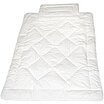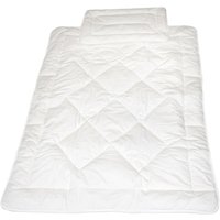 Schönes Schlafset für Babys und Kinder mit besonders empfindlicher Haut Mit unserem Schlafset aus natürlichen Cellulosefasern und Bio-Baumwolle (kbA) bieten wir Ihnen eine wunderbare Ganzjahres Kinderbettdecke sowie ein speziell für Babys und Kleinkinder entwickeltes Flachkissen. Aufgrund der besonders hautfreundlichen, pflanzlichen Materialien sind diese hervorragend für Nachwuchs mit empfindlicher Haut geeignet. Ganzjahres Bettdecke aus 100% Cellulosefasern, Inlett 100% Bio-Baumwolle (kbA) 2-teiliges Schlafset aus Bettdecke und Flachkissen Optimal für Babys und Kinder mit empfindlicher Haut Besonders hautfreundliche Naturfasern Hergestellt in Deutschland Baby- und Kinderbettdeckemit einer Füllung aushautfreundlichem Lyocell Unsere Bettdecken für Babys und Kleinkinder aus Cellulosefasern eignen sich hervorragend für Nachwuchs mit empfindlicher oder zu allergieneigender Haut. Die hautfreundliche Bettdecke bietet Eltern damit eine natürliche und vor allem komfortable Alternative. Der Bezug der Kinderbettdecke besteht aus reiner Bio-Baumwolle (kbA). Untersuchungen haben ergeben, dass diese Bettdecken selbst von Neurodermitis- und Psoriasispatienten als hervorragend hautverträglich empfunden werden. Pflegehinweis Bitten waschen Sie das Set maximal bei 60°C im Schonwaschgang Ihrer Waschmaschine. Wählen Sie hierfür die niedrigste Umdrehungszahl. Die Bettware für Ihre Liebsten sollte nicht geschleudert werden und nach dem Waschvorgang einfach liegendlufttrocknen. Details zum Schlafset Optimal für Babys und Kinder mit empfindlicher Haut Natürliche und komfortable Alternative Inletts aus reiner Bio-Baumwolle (kbA) Ideal bei Problemen mit Hausstaubmilben Waschbar bis 60°C Wärmeverhalten*** Feuchtigkeitsausgleich**** Wohlfühlfaktor****
