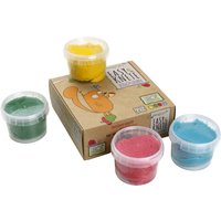 Nachhaltig und farbenfroh - Knetmasse von neogrün Kinder ab 3 Jahren können mit der Kinderknete in 4 verschiedenen Farben ihrer Kreativität freien Lauf lassen. Die Softknete lässt sich gut formen, sodass die Kleinen nach Herzenslust modellieren, rollen oder stanzen können. Wenn gewünscht, können Figuren an der Luft getrocknet werden. Ansonsten wird nach dem Spielendie Knetmasse in einem der praktischen, wiederverschließbaren Becher aufbewahrt. Ausschließlich aus natürlichen Inhaltsstoffen, bio-zertifiziert. Bio-zertifizierteKinder Kneteaus natürlichen Rohstoffen 4 x 120 g Mit mineralischen und pflanzlichen Farbpigmenten Frei von Parabenen, Silikonen, Azofarbstoffen Made in Germany Warnhinweis Achtung! Nicht geeignet für Kinder unter 3 Jahren. Jüngere Kinder sollten von Erwachsenen beimKneten beaufsichtigt werden.
