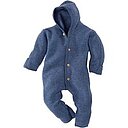 Engel Natur Baby Kapuzenoverall Bio-Merinowolle Fleece melange-blau Gr. 74/80
