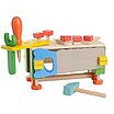 Kinderwerkzeugkiste und Kinderwerkbank in einem Der perfekte erste Kinderwerkzeugkasten für den kleinen Handwerker mit viel Zubehör. Und im Handumdrehen kann die kleine Werkzeugkiste in eine kleine Kinderwerkbank umfunktioniert werden. Das bunte Holzspielzeug aus FSC-zertifizierten Hölzern ist mit wasserbasierten Farben lackiert und überzeugt nicht zuletzt durch lebenslange Ever-Earth-Garantie. Maße 13 x 21,4 x 11,4 cm Hergestellt aus FSC®-zertifizierten Hölzern (Gummibaum und Schichtholz) Mit ökologisch unbedenklichen Farben auf Wasserbasis bemalt Fördert Feinmotorik, Auge-Hand-Koordination und konstruktives Denken Umgestaltung vom Kinderwerkzeugkasten zur Kinderwerkbank möglich Ein vielseitiges Holzspielzeug Aufmachung und Ausstattung dieses kleinen Kinderwerkzeugkastens sind einem realen Werkzeugkasten nachempfunden. Da gibt es für die Kleinen erst einmal eine Menge Gegenstände zu entdecken. Dann folgt die Praxis. Neben unzähligen Möglichkeiten des Hämmerns, Schraubens, Drehens und Steckens ist an diesem Holzspielzeug besonders schön, dass die Kinder es komplett auf den Kopf stellen können – und schon wird aus einem Werkzeugkasten eine kleine Kinderwerkbank. Sicheres Holzspielzeug Holzspielzeug von Ever Earth ist nachhaltig und ökologisch vollkommen unbedenklich. Das Holz ist unbehandelt und mit ökologischen Farben auf Wasserbasis bemalt. Es macht also nichts, wenn Kinder das Holzspielzeug gelegentlich mit dem Mund „untersuchen“. Des Weiteren ist unbehandeltes Holz erwiesenermaßen wegen der Selbstreinigungskraft des Holzes hygienischer als Kunststoff. Und: Holz ist einfach ein schönes Material. Ever Earth Ever Earth steht für solides und sicheres Kinderspielzeug aus Holz. Das Unternehmen setzt sich seit vielen Jahren für den Erhalt der Wälder ein und ist Eigentümerin eines ca. 8000 ha großen Waldgebietes in der Provinz Zhejiang im Südwesten Chinas. Der Wald des Spielzeugunternehmens wurde 2011 überprüft und mit einem FSC®-Zertifikat (C106741) für nachhaltige Forstwirtschaft ausgezeichnet. Für die weitere Verarbeitung setzt Ever Earth ausschließlich ICTI-zertifizierte Betriebe aus der Umgebung ein. Weitere Informationen zu Ever Earth finden sie hier. Details zum Produkt Frei von bedenklichen Inhaltsstoffen Pädagogisch wertvolles Spielzeug Verpackung aus recyclebarem Karton Altersempfehlung: ab 3 Jahren Achtung: Nicht geeignet für Kinder unter 3 Jahren wegen verschluckbarer Kleinteile. Erstickungsgefahr! Warnhinweis: Alle plastischen Befestigungsmittel sind nicht Bestandteil dieses Spielzeugs und müssen aus Sicherheitsgründen vor Gebrauch entfernt werden. Die Beaufsichtigung durch einen Erwachsenen ist notwendig!