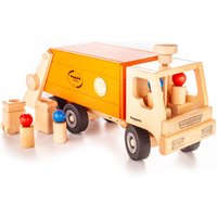 Fagus Müllkipper aus massivem Buchenholz für grenzenlosen Spielspaß - Limitierte Edition Beim Anblick des Fagus Mülllasters schlagen alle Kinderherzen höher. Von diesem wunderschönen Holzspielzeug in Sonderausgabesind von Fagus lediglich 1207 Stück hergestellt worden. 2 Holzfiguren finden im Fahrerraum Platz, 2 weitere Figuren fahren hinten an der Rampe mit. Ganz so, wie bei der richtigen Müllabfuhr. Zum Entleeren werden die zwei mitgelieferten Mülltonnen nach oben gekippt. Ist der Müllkipper voll beladen, kann der Behälter ausgekippt werden. Mit laufleisen Rädern, edlem Sonderedition-Zertifikat an der Lasterseite und einem Knauf vorne zum Lenken des Müllkippers. Made in Germany.   Hochwertiger Fagus Müllkipper für fahrzeugverliebte Kinder ab 3 Jahren - aus massivem Buchenholz, mit 4 Figuren, 2 Mülltonnen Extra groß - Maße 42,5 x 17 x 19 cm Mit vielen durchdachten Details - Knauf zum Lenken, laufleise Räder, kippbare Müllvorrichtung, kippbare Laderampe Limitierte Sonderedition - insgesamt wurden 1207 Müllkipper produziert, mit Sonderedition-Zertifikat an der Seite des Lasters Für ein unvergleichliches Spielerlebnis - Fagus Holzspielzeug ist qualitativ überaus hochwertig, langlebig und bereitet viele Jahre Freude beim Spielen Faszination Müllkipper Große Fahrzeuge finden alle Kinder faszinierend. Baufahrzeuge, Busse oder eben auch Müllkipper können von den Kleinen ewig bestaunt werden. Der Fagus Müllkipper aus massivem Buchenholz bietet diese Faszination für das heimische Kinderzimmer. Und das wunderschöne Holz Fahrzeug sieht tatsächlich aus wie eines der Originale auf der Straße. Der schicke Müllaster verfügt über eine Mülltonnenkipp-Funktion. Die Laderampe kann ebenfalls gekippt und, wenn gewünscht, auch oben fixiert werden. Die laufleisen Reifen mit Profil sehen authentisch aus. Wenn der Müllkipper im Kinderzimmer seine Touren dreht, nehmen zwei Müllwerker im Fahrbereich Platz und die zwei anderen Kollegen kümmern sich hinten am LKW um die Entsorgung des Mülls. Fagus Holzspielzeug – nur das Beste für dein Kind Fagus verwendet ausschließlich Holz aus zertifizierter, nachhaltiger Forstwirtschaft. Im Holzspielzeug stecken keinerlei Nägel, Schrauben oder Klammern, alles wird verzahnt, gedübelt und verleimt. Mit viel Liebe zum natürlichen Material und Handwerk werden sämtliche Fahrzeuge in Handarbeit in Deutschland hergestellt. Die Limited Edition des Müllkippers ist besonders gelungen und ein wahrer Hingucker. Man sieht und spürt auf den ersten Blick, bzw. bei der ersten Berührung, dass in dem Kipper ganz viel handwerkliches Know How steckt. Kinder können hier beim Spielen kleine, aber feine Details entdecken und sich über die Funktionen freuen. Dennoch lässt der Mülllaster, dank des zurückhaltenden Designs, viel Freiraum für Spielideen und Kreativität.