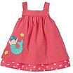Das Gute-Laune-Kleid von frugi zum Wenden Mit dem frech fröhlichen Wendekleid von frugi macht Ihr Nachwuchs immer eine gute Figur. Dank Wendefunktion stehen zwei Designs zur Wahl zwischen denen gewählt werden kann. Kräftige Farben, schöne Muster und kindgerechte Applikationen mache die Kindermode von frugi zu einem Blickfang mit Wiedererkennungswert. Dank reiner Bio-Baumwolle trägt sich das Kleid angenehm weich auf der Haut und ist zudem besonders hautfreundlich. Waschbar bis 30°C, GOTS-zertifiziert. Hergestellt aus Bio-Baumwolle (kbA), GOTS-zertifiziert Kräftige Farben, schöne Muster, kindgerechte Applikationen Wendekleid mit 2 Designs Hautfreundliches Material, bequeme Passform Maschinenwaschbar bis 30°C Niedliches Sommerkleid für freche Mädchen Farbenfroh, frech und fröhlich – so präsentiert sich die Kindermode von frugi. Das schöne Wendekleid aus hautfreundlicher Bio-Baumwolle (kbA) kommt in kräftigen Farben daher und sticht aufgrund der schönen Musterung und der niedlichen Applikationen aus der Menge hervor. Zwei unterschiedlich gemusterte Seiten sorgen für Abwechslung. Das schöne Mädchenkleid lässt sich wunderbar kombinieren. Frugi typisch ist auch die tolle Passform und der herrlich leichte Tragekomfort, der diese Kinderkleidung im Handumdrehen zum Lieblingsstück im Kleiderschrank werden lässt. Baby- und Kinderkleidung von frugi Frugi steht für exklusive Baby- und Kinderkleidung in hochwertiger Bio-Qualität. Funktionalität, Passform sowie die individuelle und farbenfrohe Gestaltung sind die Markenzeichen der jungen Modemarke. Was die kindgerecht gestalteten Kleidungsstücke so besonders und außerordentlich macht, ist die in jedem Kleidungsstück deutlich zu spürende Liebe zum Design und die optimale Passform. Bequeme Bündchen, solide verarbeitete Nähte und strapazierfähiges Gewebe. Die verwendete Bio-Baumwolle (kbA) ist so weich, das die schönen Kleidungsstücke schnell zur Lieblingskleidung Ihres Nachwuchses werden. Besonders bezeichnend für die Baby- und Kinderkleidung von frugi sind die einzigartige Farbwahl sowie die Farbkombinationen untereinander. Kein Kleidungsstück wirkt überladen. Individuelle Applikationen und Muster sorgen für einen „Hinguckereffekt“ mit Wiedererkennungswert. Details zum Produkt Einzigartiges Design mit Wiedererkennungswert Hautfreundliches, atmungsaktives Material Bequeme Passform Einfaches An- und Ausziehen Kräftige Farben, schöne Farbkombinationen, kindgerechte Applikationen Moderne Baby- und Kinderkleidung in hervorragender Qualität Robuste Materialien