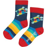 Putzige Kindersocken von Frugi Solche Socken nennt nicht jeder sein Eigen. Die niedliche Fußbekleidung aus Bio-Baumwolle (kbA) lässt die Haut atmen, sitzt passgenau und doch wunderbar bequem am Fuß. Fersen und Fußspitzen wurden farblich abgesetzt. Damit die schicken Kindersocken nicht verrutschen wurden diese mit einem soften Bündchen versehen. Kindersocken aus 90% Bio-Baumwolle (kbA), 8% Polyamid, 2% Elasthan Passgenau und bequem Kindgerechtes Design Atmungsaktiv und bequem Formtreu