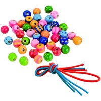 Holzperlen mit Bändern fördern die Kreativität Holzperlen sind vielseitig einsetzbar, Kinderperlen sollten besondere Kriterien aufweisen. Diese Perlen eignen sich perfekt, sie sind nicht zu klein, mit einem Durchmesser vonca. 9Millimetern können auch vierjährige Kinder bereits die Perlen fädeln. 22 verschiedene Farben sowie3 farbige Bänder bieten genügend Spielraum für kreatives Basteln. Die Bohrungen sind groß genug, dass auch kleine Kinderhände die Fäden problemlos durchziehen können. Perlen fädeln macht schon kleinen Kindern viel Spaß und schult zugleich die Feinmotorik. Die Holzperlen sind angenehm griffig, es handelt sich um ein umweltfreundliches Naturprodukt. Allerdings sollten Kinder unter 3 Jahren diese Perlen nur unter Aufsicht nutzen, da diese gerne im Mund landen. Zwar sind die Kinderperlen nicht giftig, sollten aber aufgrund der Erstickungsgefahr nicht verschluckt werden. Details zum Produkt 44 Holzperlen 3farbige Stretchbänder Konzentration und Feinmotorik werden spielerisch geschult Ab ca. 4 Jahre Holzperlen ca 9 mm, 3 mm Lochdurchmesser Das Mitbringsel für den Kindergeburtstag Die Packungsgröße eignet sich gut als kleines Mitbringsel für einen Kindergeburtstag, 44 bunte Perlen sind ein tolles, kleines Geschenk. Oder Sie geben jedem Kind bei der Kinderparty ein solches Bastelsetdieser Kinderperlen und basteln gemeinsam schöne Armbänder. Perlen fädeln erfordert Konzentration und Ruhe, eine tolle Möglichkeit, eine aufgewühlte Bande wieder zur Ruhe kommen zu lassen. Die Kinder produzieren ihren Preis selber und haben dabei noch jede Menge Spaß. Basteln Sie viele kleine Geschenke Immer wieder stehen Feiern ins Haus, der Geburtstag der Oma oder das nächste Weihnachtsfest. Mit den Holzperlen können Kinder selber schöne Geschenke basteln, ihrer Fantasie freien Lauf lassen. Vielleicht kreieren sie einen besonderen Schlüsselanhänger? Vielleicht ein einzigartiges Lesezeichen? Mit diesen Kinderperlen können Kinder einfach tolle Geschenke zaubern, sie werden stolz auf ihre Kreationen sein. Wenn Sie den Inhalt mehrerer Packungen zur Verfügung stellen, können Ihre Kinder sich stundenlang mit dem Fädeln der Perlen beschäftigen. Viele bunte Ketten und Armbänder zeugen von Ausdauer und Konzentrationsfähigkeit. Beides sind Fertigkeiten, die ihre Kinder in ihrem späteren Leben stetig benötigen werden, um voranzukommen. Hinweis Achtung! Wegen verschluckbarere Kleinteile Erstickungsgefahr! Nicht für Kinder unter drei Jahren geeignet.