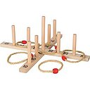 Hochwertig verarbeitetes Wurfspiel für die ganze Familie Das Ringwurfspiel aus Holzist ein toller Zeitvertreib für die ganze Familie. Schnell zusammengesteckt und aufgebaut können die Spieler abwechselnd versuchen, mit einem Wurf mit dem Sisalring, möglichst viele Punkte zu erzielen. Frei nach der Devise "Dabei sein ist alles", können schon Kinder ab 3 Jahre mit dem Gartenspielzeug spielen. Spielerisch werden Motorik und Geschicklichkeit geschult. Das robuste goki Outdoor Spielzeug wurde klar lackiert (lösungsmittelfrei) und kann bereits von Kindern selbstständig zusammengebaut werden. Die Sisalringe liegen angenehm in den Händen. Nach dem Spielen werden die Einzelteile im mitgelieferten Baumwollsack untergebracht. Streng schadstoffgeprüft. Geschicklichkeitsspiel aus Holz und Sisal, 15-teilig, klar lackiert (lösungsmittelfrei) Großer Spielspass für die ganze Familie Durchmesser 56 cm Mit praktischem Baumwollbeutel zum Verstauen Schult spielerisch Motorik und Geschicklichkeit Warnhinweis Achtung! Nicht geeignet für Kinder unter 3 Jahre. Verletzungsgefahr.