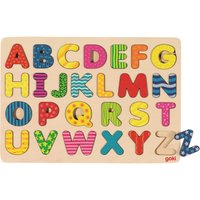 Das erste Puzzle Das goki Steckpuzzle aus Holz eignet sich für Kinder ab3 Jahren. Kinder können hiermit in ihrem eigenen Tempo spielen. Formen und Farben werden spielerisch geschult. Die einzelnen Teilen wurden sorgfältig gerundet und liegen, dank kindgerechter Maße, gut in kleinen Kinderhänden. Jeder Buchstabe wurde mit einem unterschiedlichen Design versehen. Das Alphabet Puzzle ist nicht nur etwas für Puzzle-Anfänger, auch ältere Kindergartenkinder haben noch ihre Freude daran und können, gemeinsam mit Mama oder Papa, das Alphabet erlernen.Die verwendeten Farben sind lösungsmittelfrei, das Kinderspielzeug streng schadstoffgeprüft. 26-teiliges goki Steckpuzzle aus Schichtholz, bunt lackiert (lösungsmittelfrei) Schult die Motorik, Empfinden für Farben und Formen und erstes Verständnis für Buchstaben Robust und langlebig Maße 30 x 21 x 1 cm Für Kinder ab 3 Jahren Warnhinweis Achtung! Nicht geeignet für Kinder unter 3 Jahren. Verletzungsgefahr.