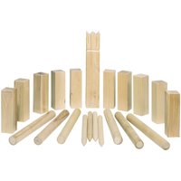 Kubb Wikingerspiel Outdoor - Geschicklichkeitsspiel für Jung und Alt Kubb,derSpiele-Trend aus Skandinavien, ist seit Jahren der absolute Rennerals Gesellschaftsspiel im Freien für die ganze Familie. Fördert Geschicklichkeit, Körpermotorik und Teamgeist.Vollkommen variabel einsetzbar, egal ob Sie das Wikingerspiel im Garten, auf dem Rasen oder am Strand aufbauen und spielen wollen.Hochwertig verarbeitetes Holzspiel, robust und langlebig. Mit ausführlicher Anleitung. Mit dem spiel gut-Siegel ausgezeichnet. Streng schadstoffgeprüft. 21-teiliges Kubb Wikingerspiel Familienspiel für 2 bis 12 Spieler zwischen 5 und 99 Jahren Hergestellt aus europäischer Buche unter strenger Berücksichtigung der Nachhaltigkeit König 55 x 55 x 300 mm Stabiler Baumwollbeutel DasWikinger Spiel für den Strand oder zu Hause im Garten DasWikinger Spiel beinhaltet viele positive Möglichkeiten. DasKubb Spielkann mit 2 Personen, oder bis zu 12 Personen, aufgeteilt in zwei Mannschaften, gespielt werden. Es fördertden Teamgeist und das strategische Denken genauso, wie eine gewisse Wurfgeschicklichkeit. Gespielt wird auf einer Fläche von 5 x 8 m gegeneinander. Ziel des Spiels ist es, den König zu Fall zu bringen,nach dem die 5 Kubbs eines Spielers oder einer Mannschaft umgeworfen wurden.Spiel und Spaß am sportlichen Ehrgeiz,unddie Geselligkeit, kommen bei diesemSpiel auf keinem Fall zu kurz. Einmal das Kubb Spielgespielt, lässt die Faszination Sie bestimmt nicht mehr los. Robustes Material, für ein beliebtes Gesellschaftspiel Gefertigt wird dieses äußerst robusteFamilienspiel aus europäischer Buche, unter Berücksichtigung der Nachhaltigkeit. Die Firma goki entnimmt Holz nur aus Wäldern, wo es auch wieder durch Aufforstung nachwachsen kann. goki spendet jedes Jahrweit über 10.000Bäume, für verschiedene Gebiete in Deutschland. Das Set besteht aus folgendem Inhalt: Ein König mit dem Maß von 55 x 55 x 300 mm, zehn Kubbs mit den Maßen 45x 45 x 150 mm, 6 Wurfhölzer und 4 Eckstäbe. Details zum Produkt Mit dem spiel gut-Siegel ausgezeichnet Mit ausführlicher Anleitung Sorgfältig geschliffen, abgerundete Ecken und Kanten Das Wikinger Spiel - der Spiele-Trend aus Skandinavien Robust und stabil Ab 5 Jahre Hergestellt in Europa Warnhinweis: Achtung: Die Verpackung desGesellschaftsspieles ist kein Spielzeug. Verpackung vor dem Spielen entfernen.