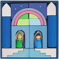 Spielen, Ausprobieren und Entdecken - Holzspielzeug von Grimms Wohl niemand kann sich der Magie von Polarlichtern entziehen. Mit der Grimms Bauwelt Polarlicht kommt die Magie direkt ins Kinderzimmer. Die besonderen Holzbausteine in harmonischer Farbgebung bieten vielerlei Spielmöglichkeiten. Mit den lasierten Bauklötzen kann gestapelt und konstruiert werden. Das Holzspielzeug wird in einem Holzrahmen geliefert, sodass nach dem Spielen alle Holzbausteine puzzelnd wieder eingeordnet werden können. Zum Lieferumfang gehören 4 "Edelsteine", die das Holzspiel-Set perfekt abrunden. Jeder einzelne Baustein wird mit unbedenklicher Farbe lasiert. Die natürliche Haptik des Holzes bleibt so erhalten, die Maserung ist sichtbar. Für Kinder ab 3 Jahren. Einzigartig schöner Holzbaustein Baukasten - 20-teilig, aus Laubholz Maße 26,5 x 26,5 x 5 cm 20-teilige Bauwelt, 2 Freunde (Holzmännchen), 1 Schnur, 4 Glitzersteine, 1 Rahmen, bewegliche Tür Natürliche Haptik und Optik des Holzes Schult spielerisch die Motorik, Wahrnehmung, Phantasieund gestalterischen Fähigkeiten So viele Möglichkeiten Eisig und märchenhaft - kühle Nuancen von Weiß, Blau und zarten Pastelltönen lassen dein Kind in eine andere Welt eintauchen und phantasievoll spielen. Unterschiedlich geformte Holzbausteine warten darauf, bespielt zu werden. Die Verwendungsmöglichkeiten sind schier endlos und dein Kind wird es lieben, damit immer wieder neue Spielideen umzusetzen. Der Clou sind natürlich das handbemalte Himmelszelt mit kleinen Sternchen, die tollen Glitzer Edelsteine und die bewegliche Tür. In den Holzrahmen können alle Teile nach dem Spielen wieder zusammengefügt werden - wie bei einem Puzzle. Alle Kinder lieben Holzbausteine In allen Teilen der Welt spielen Kinder seit Generationen mit Holzbausteinen. Aus gutem Grund, denn das Kinderspielzeug spricht alle Kids zwischen 0 und 10 Jahren an. Damit kann gebaut, gestapelt und wilde Konstruktionen entstehen, sodass die kreativen Ideen vielfältig umgesetzt werden können. Eltern entscheiden sich für Grimms Holzbausteine, weil diese umweltfreundlich und sozial fair hergestellt werden, strengen Sicherheit- und Schadstofftest unterliegen und das Spielzeug robust und langlebig ist. Und das Schönste: Beim Spielen mit den bunten Holzbausteinen wird das Kind spielerisch gefördert und die Motorik, die Kreativität als auch die Wahrnehmung geschult. Warnhinweis Achtung! Nicht geeignet für Kinder unter 3 Jahren. Verschluckbare Kleinteile.