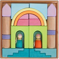 Holzbausteine in zarten Pastelltönen Verschiedene Farben und Formen sowie die natürliche Haptik und Optik der Holzbausteine laden dein Kind dazu ein, die tollen Grimms Bausteine immer wieder zur Hand zu nehmen. Unendliche Spielideen sind umsetzbar und mit der Bauwelt Wolkenspiel kann nach Herzenslust gestapelt, gebaut und kreiert werden. Das Bauklötze Set wird mit einem Holzrahmen geliefert. Heißt: Nach dem Spielen können alle Holzbausteine wieder in den Rahmen gepuzzelt werden. Der Clou ist natürlich die montierbare, bewegliche Tür, die dem Spiel noch mehr Leben einhaucht. Die einzelnen Holzbausteine wurden mit unbedenklichen Farben lasiert, sodass die natürliche Haptik und Optik des Holzes erhalten bleiben. Für Kinder ab 1 Jahr. Einzigartig schöner Holzbaustein Baukasten - 24-teilig, aus Laubholz Maße 26,35 x 26,5 x 5 cm 24-teilige Bauwelt, 2 Freunde (Holzmännchen), 1 Schnur, 1 Rahmen, bewegliche Tür Natürliche Haptik und Optik des Holzes Schult spielerisch die Motorik, Wahrnehmung, Phantasieund gestalterischen Fähigkeiten Warum Grimms Holzspielzeug? Holz strahlt eine gewisse Lebendigkeit aus. Es ist ein einzigartiges Naturprodukt, welches man fühlen und riechen kann. Dieser Werkstoff erzählt eine Geschichte aus unserer Natur. Jedes Produkt ist aufgrund des Naturmaterials ein Unikat und jeder einzelne Holzbaustein wird mit gerundeten Ecken und Kanten versehen, sorgfältig geschliffen und bunt lasiert. Grimms ist es wichtig, auf eine Lackierung des Spielzeuges zu verzichten. Das ist zum einen so, damit die Maserung des Holzes sichtbar und die natürliche Haptik erhalten bleibt. Zum anderen bringt das Aufeinanderstapeln der Bauklötze den Kindern so mehr Spaß, da diese nicht so schnell auseinanderrutschen wie lackierte Holzbausteine. Grimms nutzt für seine Spielwaren ausschließlich Holz aus zertifizierter Forstwirtschaft und stellt seine Produkte in Europa her. Übrigens: Die Bausteine der Bauwelt Wolkenspiel können selbstverständlich auch mit bereits vorhandenen Bauspielklötzen ergänzt werden. Hoher Spielwert Die Bausteine der Bauwelt Wolkenspiel können selbstverständlich auch mit bereits vorhandenen Bauspielklötzen ergänzt werden. Grimms fertigt Kinderspielzeug mit zurückhaltenden Formen und wenig Details an. Nur schlichtes Spielzeug, das viel Raum zur phantasievollen Entfalung birgt, ermöglicht deinem Kind ein kreatives Spielerlebnis. Grimms setzt diese Idee fabelhaft um. Aufgrund der natürlichen Beschaffenheit des Spielzeuges und den vielfältigen Verwendungsmöglichkeiten, nehmen Kinder zwischen 0 und 10 Jahren Grimms Spielzeug immer wieder gern zur Hand. Kein Problem, denn das liebevoll hergestellte Holzspielzeug ist äußerst robust und langlebig.