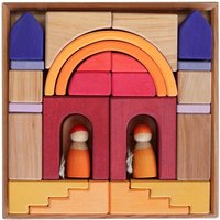 Grimms Bauwelt Wüstensand - Holzbausteine in harmonischen, warmen Farben Grimms Holzspielzeug ist einzigartig und wer die liebevoll verarbeiteten Holzbausteine bereits in seinen Händen gehalten hat, möchte nichts anderes mehr. Jeder Holzbaustein wird mit gerundeten Ecken und Kanten versehen. Die Holzbauklötze werden mit einer auf Wasser basierenden Farblasur bemalt, sodass die natürliche Maserung und die Haptik des Holzes erhalten bleiben. Das Grimms Spielzeug wird in einem praktischen Holzrahmen geliefert. Nach dem Spielen können die Bausteine in den Rahmen zurück gepuzzelt werden. Mit montierbaren, beweglichen Türen. Für Kinder ab 1 Jahr. Einzigartig schöner Holzstein Baukasten, 26-teilig, aus Laubholz Maße 26,5 x 26, x 5 cm 26-teilige Bauwelt, 2 Freunde (Holzmännchen), 1 Schnur, 1 Rahmen, bewegliche Tür Mit unbedenklichen Farben lasiert - natürliche Haptik und Optik des Holzes Schult spielerisch die Motorik, Wahrnehmung, Phantasieund gestalterischen Fähigkeiten Stapeln, Konstruieren, Aneinander reihen, Muster legen Kinder lieben Holzbausteine, weil das Holzspielzeug vielseitig verwendbar ist. Ideen in kleinen Kinderköpfen können mit Holzbauklötzen phantasievoll Gestalt annehmen. Das kreative Spielen schult die kindliche Motorik, die Wahrnehmung und das räumliche Denken. Aus anfänglichen Ideen entstehen die tollsten Bauwerke,spannende Bilder oder die Holzbausteine werden völlig zweckentfremdet und sind im Spiel Goldbarren oder Lebensmittel für den Kinder Einkaufsladen. Du siehst, Grimms Holzspielzeug lässt keine Langeweile aufkommen und bietet deinem Kind viele Stunden Spielspaß. Warum unbedingt Grimms Holzspielzeug? Wer bereits Grimms Holzspielzeug in den Händen gehalten hat, weiß um die einzigartig gute Qualität. Grimms verwendet für seine Spielwaren Holz aus zertifizierter Forstwirtschaft. Das Laubholz wird mit viel Hingabe zum Rohstoff sorgfältig geschliffen, Ecken und Kanten gerundet und bemalt. Viele Arbeitsschritte geschehen in Handarbeit, dadurch entstehen Bausteine, die sich ganz natürlich anfühlen und deren Haptik und Optik erhalten bleiben. Grimms lässt seine Spielzeuge streng schadstoff- und sicherheitstesten. Du erhältst also Kinderspielzeug, das umweltfreundlich hergestellt wurde, sicher ist und einen hohen Spielwert hat.