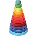 Der große Scheibenturm aus Holz Seit Jahrzenten finden Scheibentürme ihren Platz in Kinderzimmern. Aus gutem Grund – das Baby- und Kinderspielzeug spricht die Sinne an und fördert diverse Fähigkeiten. Dank der Gestaltung des Scheibenturms und der altersgerechten Spielidee, ist es den Kleinen möglich frei zu spielen und, wie nebenbei, Feinmotorik zu schulen, ein Gefühl für Farben zu entwickeln und die eigene Geschicklichkeit zu verfeinern. Stapeln, Spielen, Stecken - das Holzspielzeug in Regenbogenfarben ist vielseitig einsetzbar. Steckspiel aus Buchenholz 11 Teile lasiert Unbedenkliche Farben nach Norm EN 71 (Sicherheit für Spielzeug) Schult Hand-Auge-Koordination, Motorik und Farbempfinden Ein Motorikspielzeug aus Holz zum 1. Geburtstag Der Stapelturm mit seinen bunten Holzscheiben eignet sich vortrefflich als Geschenk für Kinder ab einem Jahr. Spielerisch wird die Koordination zwischen Auge und Hand geschult. Was für uns Erwachsene selbstverständlich ist, muss in diesem Alter erst gefördert und geübt werden. Die ansprechende Gestaltung und die satten, bunten Farben animieren die Kinder, immer wieder nach den Scheiben zu greifen, sei es zum Ab- oder Aufstapeln oder Aneinandereihen. Doch das ist längst nicht alles, gerne dürfen die einzelnen Teile des Holzspielzeugs als Bauklötze bespielt werden oder kräftig durch das heimische Wohnzimmer rollen. Der Phanatsie sind keine Grenzen gesetzt.Aus diesem Grund wird das abwechslungsreiche Motorikspielzeug Kinder über eine lange Zeit begleiten. Kinderspielzeug aus natürlichen Materialien Hochwertiges Holzspielzeug bedeutet Spielen mit allen Sinnen. Kinder greifen instinktiv zuqualitätsvollem Spielzeug, das pädagogischen Spielspaß verbreitet. Sie sind wißbegierig und möchten jeden Tag neue Dinge entdecken und erlernen. Der Scheibenturm kommt da geraderecht, denn er vereint eine altersgerechte Spielidee mit einem natürlichen Rohstoff. Hier kannder Duft und die Haptik des Holzes genossen werden. Die lebendige Maserung belebt das Spiel. Zudem ist Holzspielzeug, hier hergestellt aus Buche, äußerst robust und langlebig. Der Scheibentum von Grimms verzeiht auch ein Toben und rabiateres Umgehen damit. Wenn das Spielzeug aus Holz eine Reinigung benötigt, genügt es völlig mit einem feuchten Tuch und milder Seifenlauge die Scheiben abzuwischen. Details zum Produkt Altersempfehlung: ab 1 Jahr Vielseitig einsetzbar Die oberste, kleine Scheibe bildet einen Abschluß Farbig lasiert Durchscheinende Maserung Warnhinweis Achtung! Mögliche Gefährdung durch herausragende Teile. Bitte unbedingt immer die Sicherheitskappe auf den Stab aufsetzen während der Turm nicht montiert oder demontiert wird.