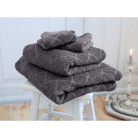 Handtuch-Set Bio-Baumwolle Frottee 4-teilig Raute dunkelgrau 2 Gästehandtücher, 1 Handtuch und 1 Badetuch