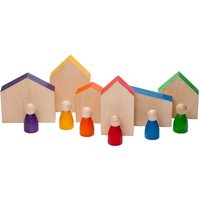 Grapat Nins® mit Häusern Schlicht und wunderschön - das sind die Nins® von Grapat.Mit diesem attraktiven Set mit 6 Holzfiguren und 6 Häusern können Kinder allerlei Spielgeschichten erfinden, bauen und stapeln. Auch für den Jahreszeitentisch sind die Holzfiguren und ihre Häuser eine Bereicherung. Hergestellt wurde jedes einzelne Teil in Katalonien, Spanien und liebevoll in Handarbeit produziert. Typisch für Grapatsind die natürliche Haptik und Optik des Holzspielzeuges, sowie das zurückhaltende Design und einfachen Formen. Das Holz stammt aus nachhaltiger Forstwirtschaft. Maße Holzfigur 6,5 x 3 cm, Maße größtes Haus11,5 x 11 x 3 cm 12-teiliges Grapat Holzspielzeugset, bunt lasiert Made in Spain, Handarbeit PEFC-zertifiziertes Holz 6 Holzfiguren, 6 Häuser Perfekt für ein freies, kreatives Spielen nach Montessori Warnhinweis Achtung! Nicht geeignet für Kinder unter 12 Monaten. Verletzungsgefahr.