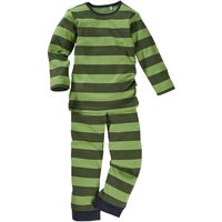 Kinder Schlafanzug 2-teilig Bio-Baumwolle Blockstreifen Grün Gr. 110/116