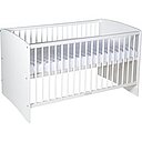 Kinderbettaus Massivholz -stabil, vielseitig, langlebig Ein Kinderbett – viele Möglichkeiten: Dieses Modell ist einBabybett und Juniorbett in einem. Es verfügt überdrei Schlupfstäbe und einen Lattenrost, der sich dreifach in der Höhe verstellen lässt, kurzum:Das Bettpasst sich den Entwicklungsschritten des Kindes über Jahre hinweg an. Je nach Größe des Nachwuchses lässt sich dasGitterbett bis zum vollendeten fünften oder sechsten Lebensjahr nutzen. Buchenholz (Hartholz) stabile, massive Bauart Oberfläche bio-geölt (Zitrusöl) Liegefläche 70 x 140 cm Hergestellt in Deutschland Für die Langlebigkeit dieses so genannten Kombibettes sorgen nicht nur seine vielfältigen Umbaumöglichkeiten. Dank der Verarbeitung aus massivem Buchenholz und der damit verbundenen Stabilität hält das Kinderbett auch den täglichen Herausforderungen im Kinderzimmer locker stand. Hergestellt ist das Bett nach der europäischen Norm EN71. Die verwendeten Hölzer stammen alle aus nachhaltiger Forstwirtschaft. Verstellbarer Lattenrost ist ein wichtiger Sicherheitsfaktor Der höhenverstellbare Lattenrost (von 15 cm auf 27 cm auf 46 cm verstellbar) dient zum einen dazu, den Eltern gerade in der Anfangsphase den Alltag mit ihrem Baby zu erleichtern. So lässt sich der Rost zunächst ganz oben befestigen und vereinfacht so das Hineinlegen und Herausheben des Säuglings.Zum anderen bietet die Verstellbarkeit des Lattenrostes einen wichtigen Sicherheitsfaktor. Sobald das Baby anfängt, sich verstärkt zu bewegen und hochzuziehen, wird der Rost weiter unten montiert. So kann das Kind nicht über die Gitterstäbe klettern. Die unterste Einstellung ist für alle Kinder erforderlich, die aus eigener Kraft sitzen und stehen können.In dieser Phase können außerdem bald diedrei Schlupfstäbe entfernt werden,so daßdas Kind alleine durch den 20,5 cm breiten Durchschupf ins Babybett hinein- und wieder herausklettern kann. Umbauseiten im Lieferumfang enthalten Aufgebaut verfügt das Holzbett über die Maße 83 x 77 x 144 Zentimeter, die Fronten sind circa 19 Millimeter stark. Dank seiner großzügigen Liegefläche von 70 x 140 Zentimeter bietet das Möbelstück auch älteren Kindergartenkindern ausreichend Platz zum Schlafen. Damit aus dem Babybett ein Juniorbett wird, lassen sich die Gitterseiten komplett entfernen. Durch einfachen Umbau des Kopf- und Fußteiles wird ausdem Babybettblitzschnell ein "echtes" Bett im Kleinformat. Die erforderlichen Umbauseiten sind ebenso wie der Lattenrost im Lieferumfang enthalten.Beim Kauf haben Eltern die Wahl zwischen zwei verschiedenen Oberflächenbehandlungen. So gibt es dasBett einmal in der Ausführung "Buche massiv, bio-geölt" oder aber deckend weiß lackiert, hier natürlich auch aus massivem Buchenholz. Details zum Produkt: Maße Juniorbett 58,8 x 77 x 144 cm Buche massiv weiß lackiert H/B/L ca.: 83 x 77 x 144 cm, Liegefläche: 70 x 140 cm inkl. 3 Schlupfsprossen Sprossenabstände: 5,5 cm Durchschlupf 21,5 cm Lattenrost dreifach höhenverstellbar (von 15 cm auf 27 cm auf 46 cm) Holzstärke von Kopf- und Fußteil = 19 mm Lattenrost dreifach höhenverstellbar von 15 cm über 27 auf 46 cm Lattenrosthöhe beim Juniorbett = 17 cm vom Boden Hergestellt in Deutschland Belastbar bis 25 kg