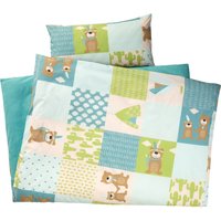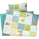 Kinderbettwäsche Bio-Baumwolle Patchwork Bär Bettbezug 135 x 200 cm, Kissen 40 x 80 cm