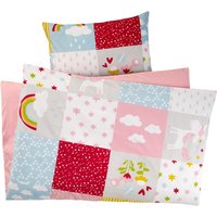Kinderbettwäsche in Bio-Qualität Das Einrichten des Kinderzimmers und das Gestalten der Schlafumgebung sollte nicht nur große Freude machen, sondern auch wohl durchdacht sein. Neugeborene, Babys und Kinder benötigen Materialien, die hautverträglich, streng schadstoffgeprüft sind und für ein ideal temperiertes, atmungsaktives und Feuchtigkeit regulierendes Schlafklima sorgen. Die Kinderbettwäsche aus 100% Bio-Baumwolle (kbA) erfüllt all diese Kriterien. Die Perkal Bettwäsche kann in der Waschmaschine bis 40° C im Schonwaschgang gewaschen werden. GOTS zertifiziert. Bettwäsche - 100% Bio-Baumwolle (kbA) - Perkal, GOTS zertifiziert Hautfreundlich, strapazierfähig, atmungsaktiv, feuchtigkeitsregulierend Maschinenwaschbar bis 40° C, im Schonwaschgang Kissen Hotelverschluss, Bettdeckenbezug Reißverschluss Strengstens schadstoffgeprüft Bio-Baumwolle (kbA) für Baby- und Kinderhaut Bewusste Verbraucher legen Wert darauf, dass Textilien umweltfreundlich und unter sozial fairen Bedingungen hergestellt und gehandelt wurden. Die Kinderbettwäsche ist aus 100% Bio-Baumwolle (kbA) und GOTS zertifiziert. Dies gewährleistet, dass die Baumwolle aus kontrolliert biologischem Anbau nicht mit chemischen Dünge- oder Entlaubungsmitteln behandelt wurde und auch keine Fungizide oder Pestizide eingesetzt wurden. Das GOTS Zertifikat garantiert eine faire Produktion vom Feld bis hin zur fertigen Bettwäsche. Die Bettwäsche für Kinder besteht also aus reinen, allergenarmen Naturfasern, die selbst für Babys und Kinder mit Allergieneigung oder leicht reizbarer Haut geeignet sind. Die atmungsaktive und feuchtigkeitsregulierende Bio-Baumwolle (kbA) sorgt für ein wohltemperiertes, trockenes und angenehmes Schlafklima. Ansprechende, weiche Kinder- und Babybettwäsche in Perkal-Qualität Die Kinderbettwäsche besteht aus dicht gewebtem Perkal. Perkal gilt als ein mittelschweres, atmungsaktives, glattes und weiches Gewebe, das gleichwohl durch Strapazierfähigkeit überzeugt. Dank seiner positiven Produktmerkmale wird Perkal nicht nur für Kleidung verwendet, sondern ist auch häufig erste Wahl, um hautfreundliche, anschmiegsame Bettwäsche zu fertigen.Der Kopfkissen- und Bettdeckenbezug wurde mit einem kindgerechten Druck versehen, den Groß und Klein ansprechend finden. Die harmonische Farbwahl macht es möglich, die Kinderbettwäsche mit bereits vorhandenen Bett-Textilien wie Betthimmel und Nestchen zu kombinieren. Nach dem Aufziehen der Bettwäsche wird der Bettbezug mit einem Reißverschluss verschlossen, das Kopfkissen wurde mit einem Hotelverschluss ausgestattet. Bei Bedarf kann die Bettwäsche bei bis zu 40°C im Schonwaschgang gewaschen werden. Details zum Produkt Kinder- und Babybettwäsche in dicht gewebtem Perkal Kindgerechter Print Allergenarm
