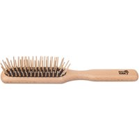 Eine sinnvolle Investition für Ihr Haar Jeden Tag benutzen wir eine Bürste und unterschätzen dabei oft, wie prägnant die Unterschiede sind und worauf man beim Erwerb achten sollte. Beim Kauf einer neuen Bürste sollten Sie bedenken, welches Material Sie wünschen und wie Ihre Haarstruktur- und Länge ist. Tun Sie sich etwas Gutes und gönnen Sie sich eine Bürste aus natürlichen Materialien. Lassen Sie die Finger von Bürsten aus Metall oder Kunststoff, diese können Ihr Haar schädigen, die Kopfhaut reizen und Ihr Haar statisch aufladen. Entspannende Körperpflege mit einem Naturprodukt Kämme und Bürsten sind wohl die ältesten Werkzeuge, die Menschen zur Körperpflege nutzten. Damals wurden die Pflegeutensilien zum Beispiel aus Fischgräten oder Knochen hergestellt.Die Haarbürste von dem Familienunternehmen Kostkamm wurde jedoch aus heimischen Buchenholz gefertigt. Der feingeschliffene Körper erleichtert das Handling. Mit Ihrer Länge von ca. 21 cm, passt das Haarpflegeutensil bei Reisen in jeden Kulturbeutel.Die Haarbürste mit abgerundeten Holznoppen pflegt und entwirrt Ihr Haar ohne es zu schädigen. Im Gegenteil: Die Bürstenstriche sind auf der Kopfhaut eine wahre Wohltat. Abgestorbene Hautzellen und Verhornungen werden gelöst und weggebürstet. Durch die Wirkung des Massageeffekts wird die Durchblutung der Kopfhaut angeregt, ebenso die Versorgung der Haarwurzel mit Nährstoffen. Auch eine Bürste will gepflegt werden Um an Ihrer Bürste möglichst lange Freude zu haben, nehmen Sie sich bitte ab und zu Zeit, verfangene Haare zu entfernen und die Haarbürste mit einem milden Shampoo zu säubern. Nach dem Reinigungsvorgang lassen Sie das Produkt bitte an der Luft trocken. Bitte legen Sie die Bürste beim Trocknungsvorgang nie auf die Heizung, das könnte dem verwendeten Material schaden. Details zum Produkt Mit abgerundeten Holznoppen für intensive Massagewirkung Feingeschliffener Körper Aus heimischen Buchenholz Länge ca. 21 cm Geeignet für kurzes bis mittellanges, sowie glattes oder gewelltes Haar Für Haut und Haar Wenn Sie noch mehr Gutes für sich und Ihr Haar tun möchten, schauen Sie sich doch unseren Shop-Bereich „Haarpflege“ an. Dort finden Sie zum Beispiel Haargel- und kuren, Spülungen und 2in1 Dusch-Shampoo.
