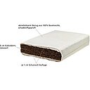 Komfortable Kindermatratze für optimalen Schlaf Hochwertige Naturmatratze für Babys und Kleinkinder aus dem Hause Lonsberg. Der mittelfeste Kern der Matratze aus latexierten Kokosfasern bietet optimalen Schlafkomfort für Kinder zwischen 0 und 4 Jahren. Die Matratzenhöhe beträgt ca. 8cm. Der 6cm hohe Kokoskern ist mit einer Kernummantelung aus reiner Schafschurwolle versehen. Diese sorgt für ein angenehmes und stets wohltemperiertes Schafklima. Ein abnehmbarer und waschbarer Bezug aus streng schadstoffgeprüfter Baumwolle rundet die Kindermatratze ab. Maße 70x140cm. Maße Matratze 70x140 cm, Höhe 8cm Matratzenkern aus latexierten Kokosfasern Mittelfester Schlafkomfort Auflage aus 500g/qm Schurwolle, abnehmbarer, waschbarer Bezug aus 100% Baumwolle Für Babys und Kinder bis zum 4. Lebensjahr, max. 45 kg Babys und Kleinkinder schlafen besser fest Die zunächst gestreckte Wirbelsäule von Babys ist optimal an die langen Liege- und Schlafphasen des Babys angepasst. Aus diesem Grunde sollten aus orthopädischer Sicht gerade die kleinsten Erdenbürger auf relativ festen Babymatratzen gebettet werden. Unsere Naturmatratzen mit dem mittelfesten Kern aus latexierten Kokosfasern bieten optimalen Schlafkomfort für Kinder zwischen 0 und 4 Jahren. Der Kern aus festen Kokosfasern besitzt eine Kernummantelung aus Schurwolle. Diese sorgt für einen angenehmen Liegekomfort und trägt gleichzeitig zu einem optimalen Schlafklima bei. Der Matratzenkern samt Kernummantelung ist zum Schutz mit einem zusätzlichen Bezug (Nessel) aus reiner Bio-Baumwolle (kbA) versehen. Umrundet wird die Baby- und Kindermatratze mit einem abnehmbaren sowie waschbaren Bezug aus 100% schadstoffgeprüfter Baumwolle. Natürlich Schlafen auf Kokosmatratzen Kokosfasern sind nahezu prädestiniert um sie zu kindgerechten Matratzenkernen zu verarbeiten. Das latexierte Polstermaterial erweist sich als relativ fest, dauerhaft elastisch sowie formbeständig. Die beinahe unverwüstliche Kokosfaser ist zudem unempfindlich gegenüber Feuchtigkeit, atmungsaktiv sowie in der Lage Wärme zu speichern. Wie immer findet die Perfektion ihren Ursprung in der Natur. Um die reife Kokosnuss beim Sturz aus bis zu 30m Höhe zu schützen, bedarf es einer besonders elastischen Faser. In einem aufwändigen Prozess werden die Fasern vom Fruchtkern getrennt und schlussendlich an der Sonne schonend getrocknet. Die wunderbar leichten Kokosfasern verdanken ihre elastischen und Wärme speichernden Eigenschaften ihrem hohen Luftanteil. Vulkanisiert mit reinem Naturlatex entsteht ein dauerhaft elastischer Matratzenkern, der sich optimal für die Herstellung von Baby- und Kindermatratzen eignet. Eine Kindermatratze zum WohlfühlenDurch die Latexierung der Kokosfasern erhält der Matratzenkern zusätzliche Elastizität, wodurch die Matratze als solches biegsam wird. Kennzeichnend für Kokosmatratzen ist die für sie typische Flächenelastizität. So geben die Matratzen bei Druckeinwirkung großflächig (flächenartig) nach, anstatt punktuell (punktelastisch) zu sein. Daraus resultiert der für Babys und Kleinkinder optimale feste und kompakte Liegekomfort. Hinweis: Bitte beachten Sie, dass diese Lonsberg Babymatratze speziell für Sie neu angefertigt wird. Rechnen Sie daher mit einer Lieferzeit von 2 – 3 Wochen. Sollten Sie eine andere, kleinereals die von uns angebotene Größe (Matratze 70x140 cm) benötigen, so kontaktieren Sie uns gerne. Gegen einen Aufpreis, der sich nach Aufwand und Material berechnet, können wir jede beliebige Matratzengröße für Sie anfertigen lassen. Details zum Produkt Angenehme Wärme und Feuchtigkeitsregulierung durch Schurwollauflage (kbT) Abnehmbarer Bezug aus 100% Baumwolle (schadstoffgeprüft) Baumwoll-Bezug waschbar bis 30°C Zusätzlicher Bezug (Nessel) aus Bio-Baumwolle (kbA) zum Schutz von Kern & Auflage Matratze 70x140 cm für Babys und Kinder bis ca. 45kg Atmungsaktiv, widerstandsfähig und langlebig Kokoskern: mittelfester Härtegrad, flächenelastisch Stück für Stück handwerklich gefertigt Zusätzliche Elastizität durch die Latexierung der Kokosfasern, Biegsamkeit QUL-zertifiziert