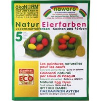 Mit ökoNORM ein unbedenklicher Osterbrauch: gefärbte Eier Zum traditionellen Osterfrühstück gehört ein Korb mit leuchtend bunten Ostereiern. Mit den nawaro Eierfarben von ÖkoNORM werden die Eier nicht nur perfekt gefärbt, die Lebensmittelfarben aus nachwachsenden Rohstoffen sind außerdem absolut unbedenklich für Mensch und Umwelt. Sieeignen sich zum Kochen und Färben in einem Arbeitsgang, ein Farbbeutel der nawaro Natur Eierfarben ist ausreichend für etwa 5 bis 7 Eier. Naturfarben aus nachwachsenden Rohstoffen Gesundheitlich unbedenkliche Lebensmittelfarben 5 Farbbeutel (rot, gelb, grün, orange, pink) Kochen und Färben in einem Arbeitsgang Je Farbbeutel ausreichend für 5 bis 7 Eier Nicht nur Kinder lieben bunte Ostereier Das Färben von gekochten Eiern ist zu Ostern in vielen Familien Tradition. Besonders Kinder lieben diesen Osterspaß – und mit den Natur Eierfarben von ökoNORM schmecken die bunten Eier gleich doppelt gut, denn die natürlichen Lebensmittelfarben (Kurkumin, Chlorophyllin und echtes Karmin) sind gesundheitlich unbedenklich. Umwelt und Ressourcen werden nicht belastet. Das Kochen der Eier in den bunten Farbstoffen ist ein Spaß für Groß und Klein. Diese Eier werden bunt gekocht.Die nawaro Eierfarben eignen sich zum Kochen und Färben in einem Arbeitsgang. Ein Farbbeutel ist ausreichend für 5 bis 7 Eier. Das Färben der Eier ist einfach: Das Farbpulver in etwa 750 ml kaltem Wasser (ohne Essig) verrühren und die Eier vor dem Erhitzen hineinlegen. Das Wasser sollte die Eier komplett bedecken. Während des Erhitzens vorsichtig umrühren, bis die Farbe schön verteilt ist. Wenn das Wasser kocht, die Eier noch 7 bis 10 Minuten kochen und nach dem Färben mit kaltem Wasser abschrecken. Beachten Sie: die Farbmischung ist für eine Färbung, bei weiteren Färbungen nimmt die Farbintensität ab. Sind die Eier bunt genug? Auf braunen Eiern wird die Farbe intensiver als auf weißen Eiern. Die Naturfarben reagieren bei jedem Ei anders, so dass unterschiedliche Farbnuancen entstehen können. Während des Erkaltens „reift“ die Farbe nach. Sie dürfen sich in jedem Fall auf einen schönen bunten Osterkorb freuen. Ein Tipp für Kreative: Der nawaro Wasserfarbkasten ist für das Bemalen von mit nawaro Natur Eierfarben gefärbten Eiern bestens geeignet. Hinweis: Benutzen Sie einen Topf aus Edelstahl. Emaillierte Töpfe könnten angefärbt werden, eventuelle Verfärbungen verblassen jedoch durch mehrmaliges Spülen. Details zum Produkt Natürliche Lebensmittelfarben: Kurkumin, Chlorophylline, echtes Karmin kompostierbar/recyclebar Enthält Steinsalz Glutenfrei Made in Germany Mindesthaltbarkeitsdatum: Mai 2025